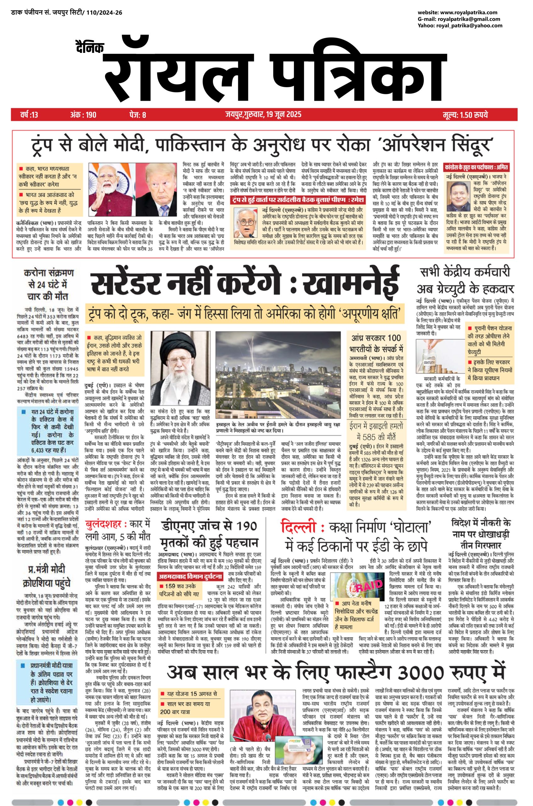 19 जून 2025 दैनिक रॉयल पत्रिका