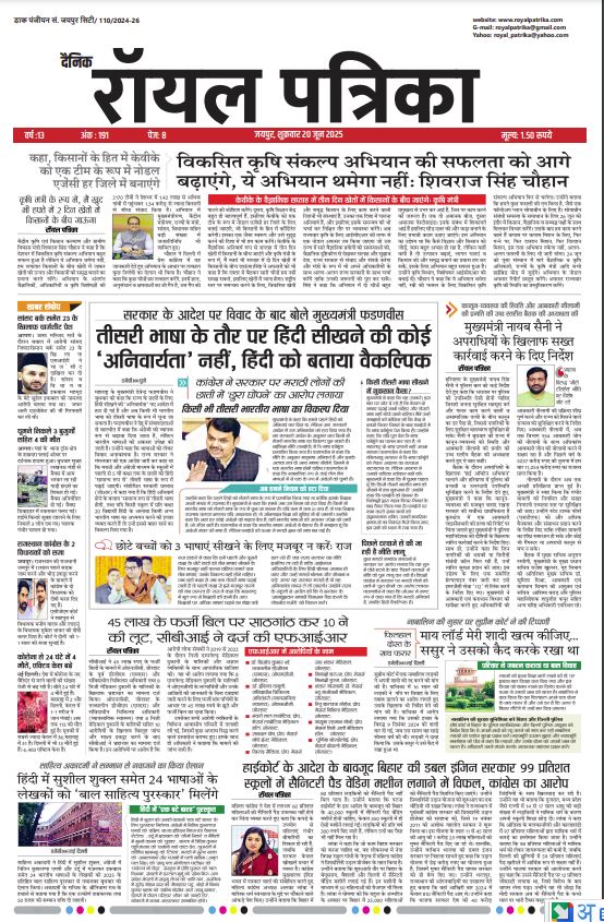 20 जून 2025 दैनिक रॉयल पत्रिका