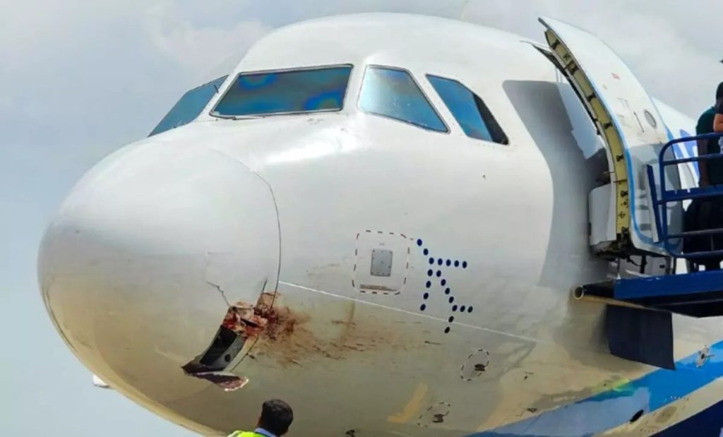 -इंडिगो की फ्लाइट के विमान के फ्रंट में डेंट आया, इमरजेंसी लैंडिंग कराई गई