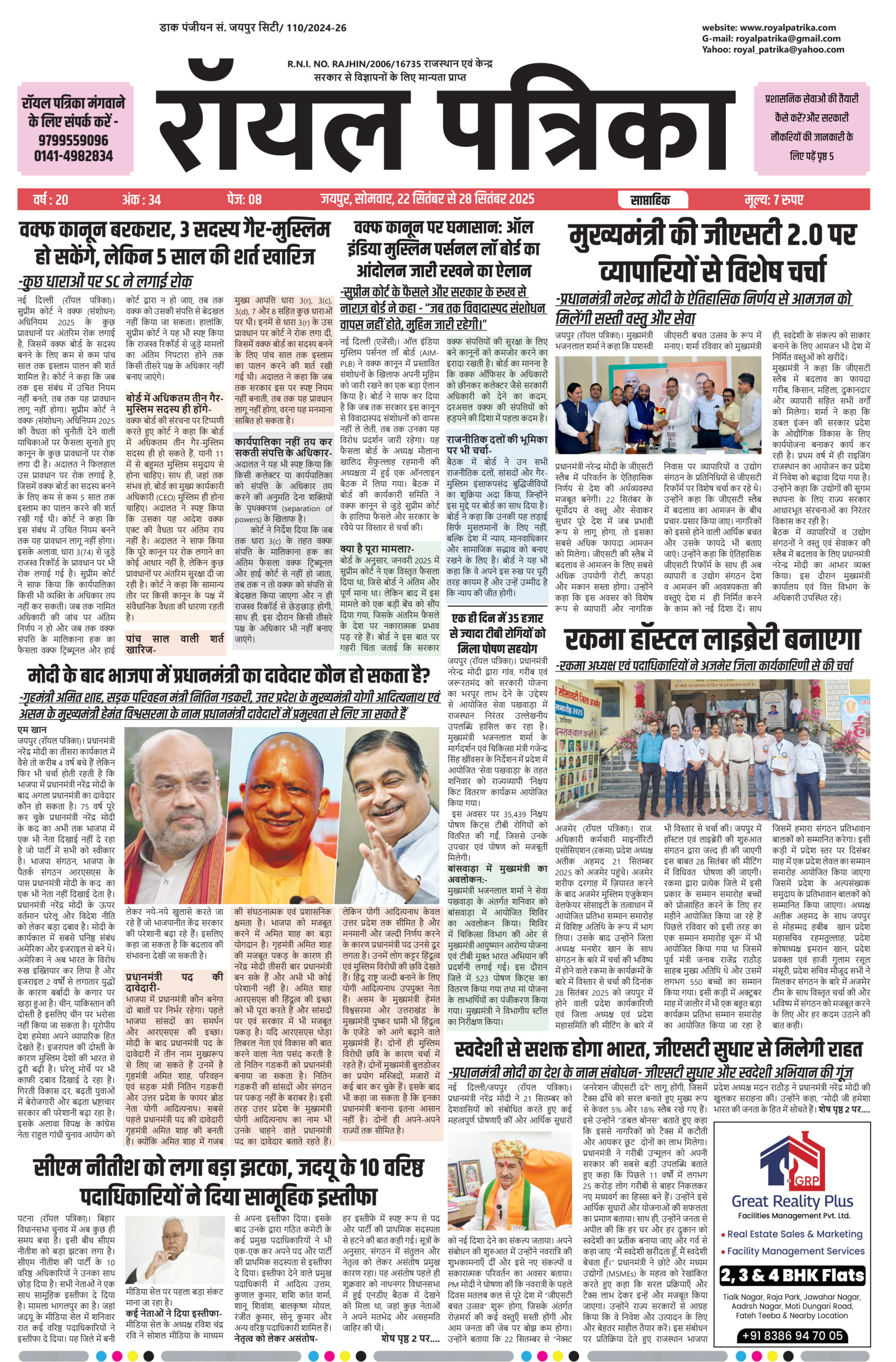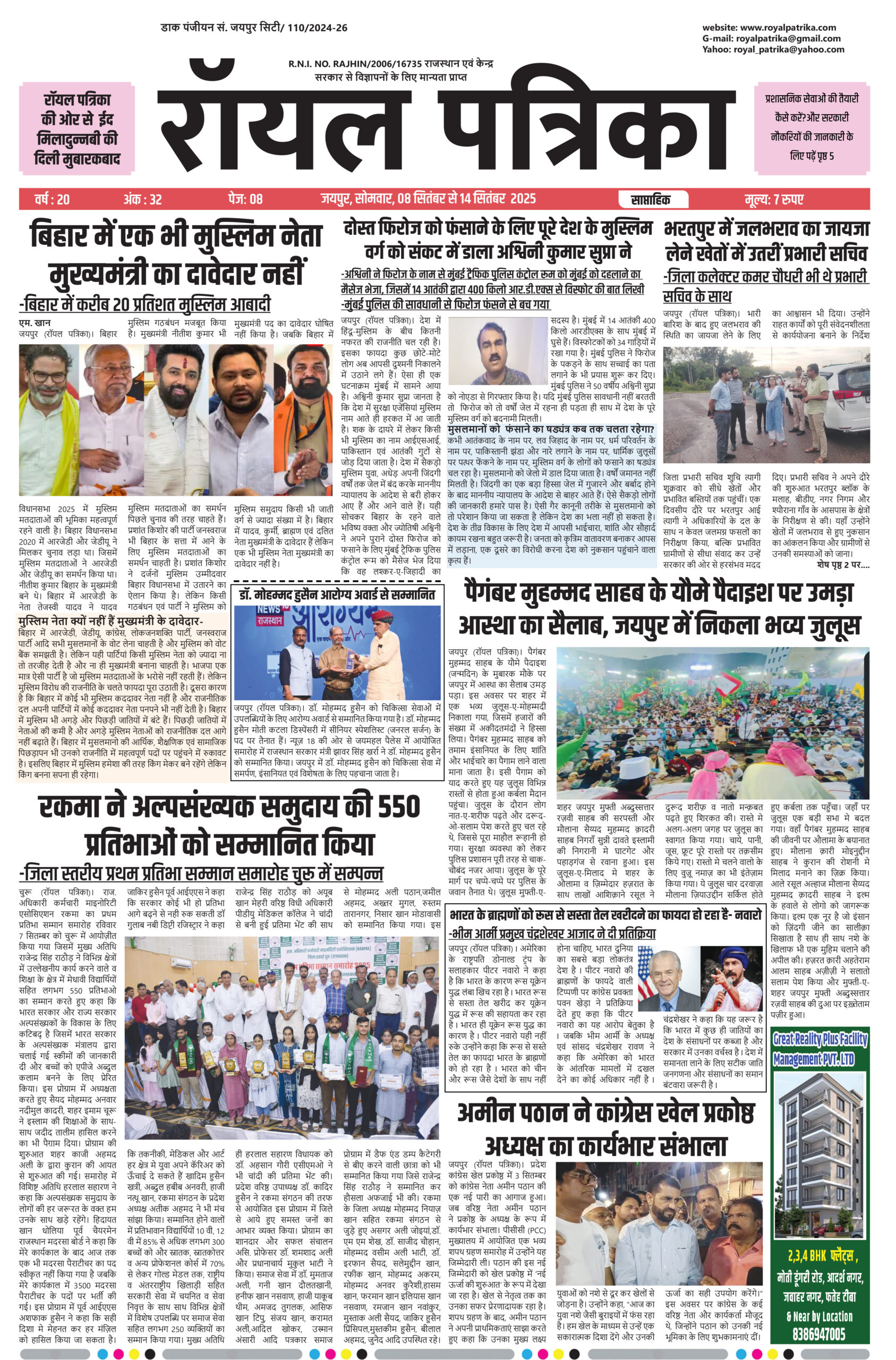 दैनिक रॉयल पत्रिका 01 अक्टूबर 2025