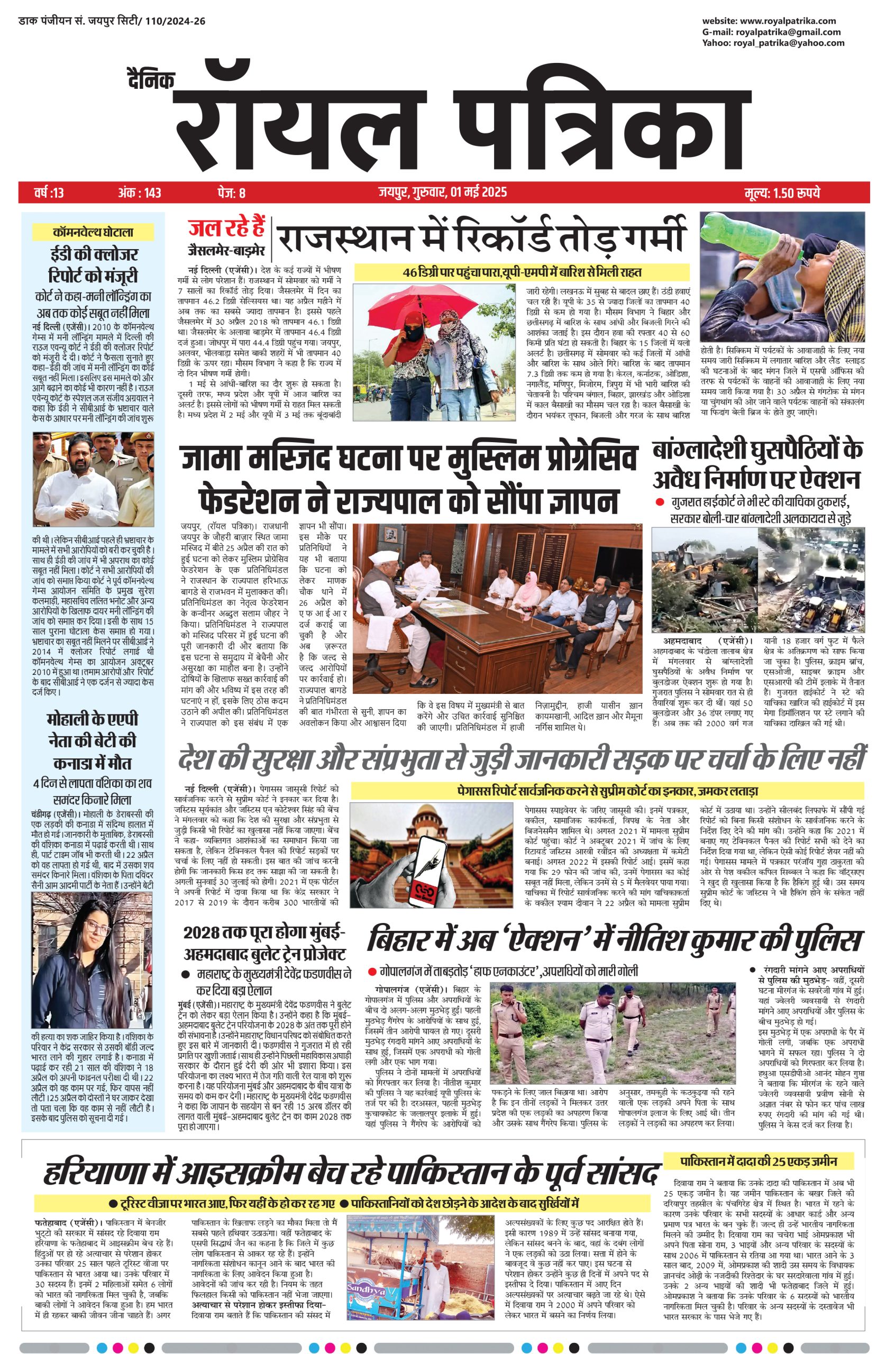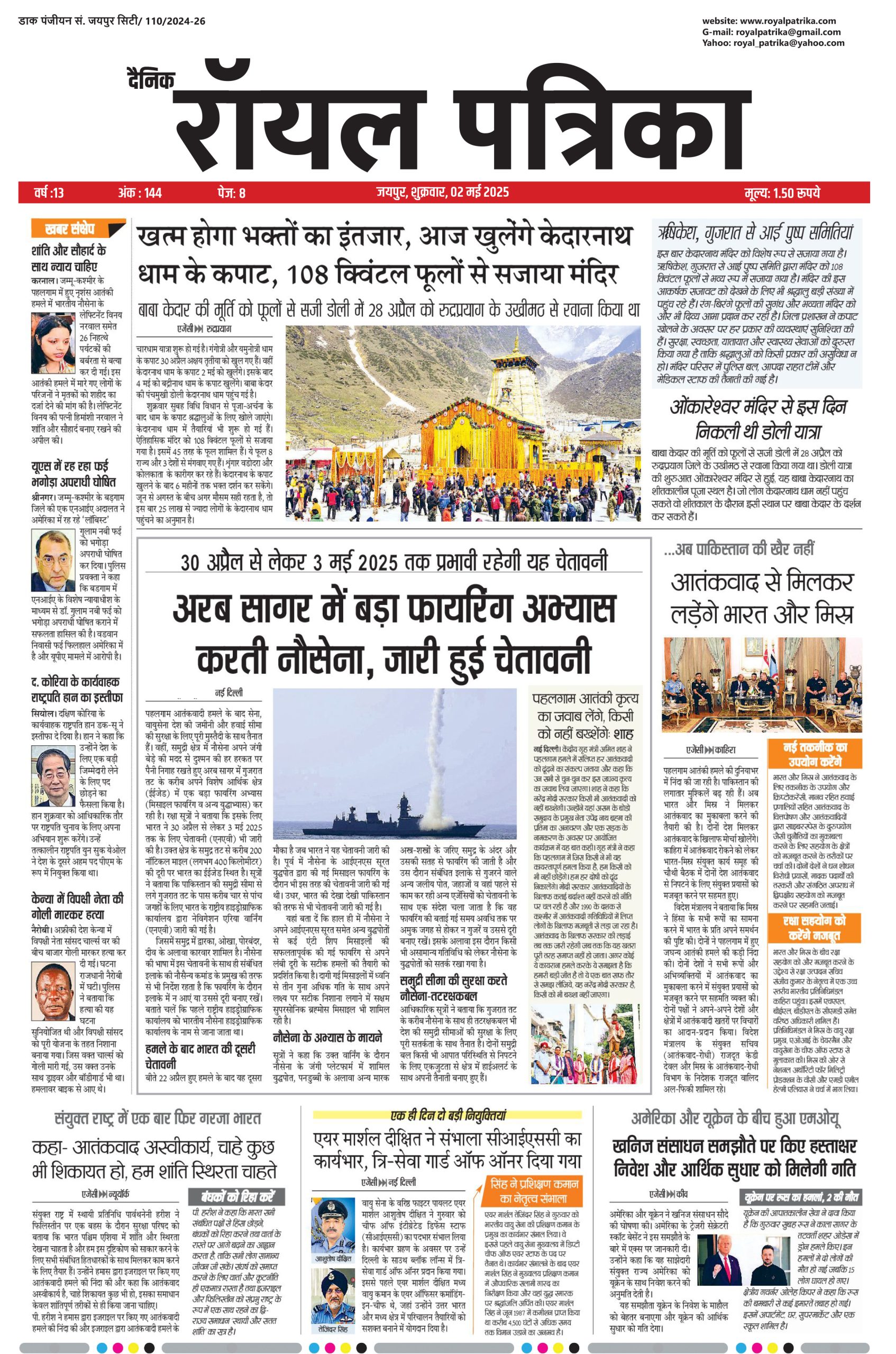 02 मई 2025 दैनिक रॉयल पत्रिका