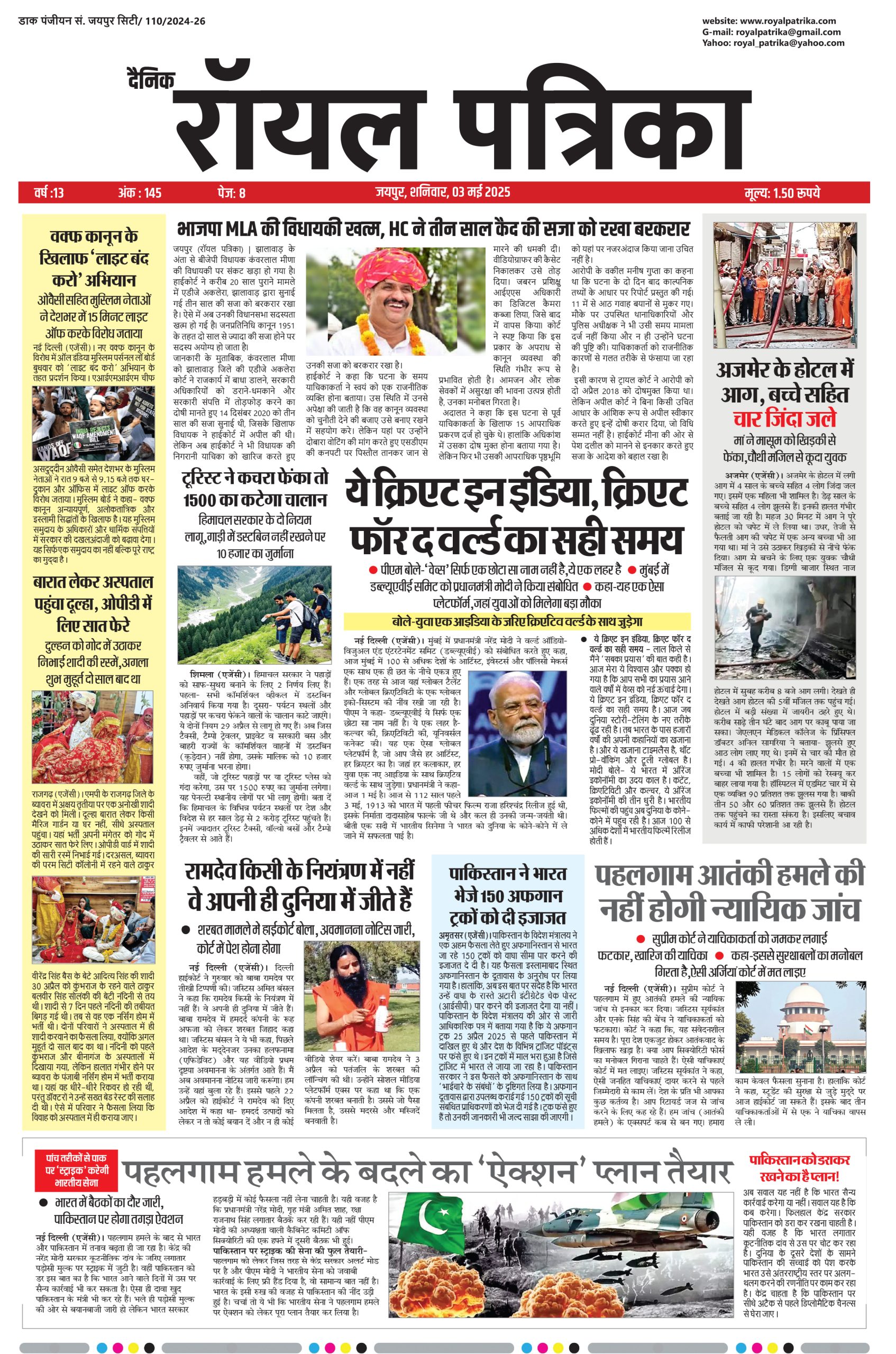 03 मई 2025 दैनिक रॉयल पत्रिका