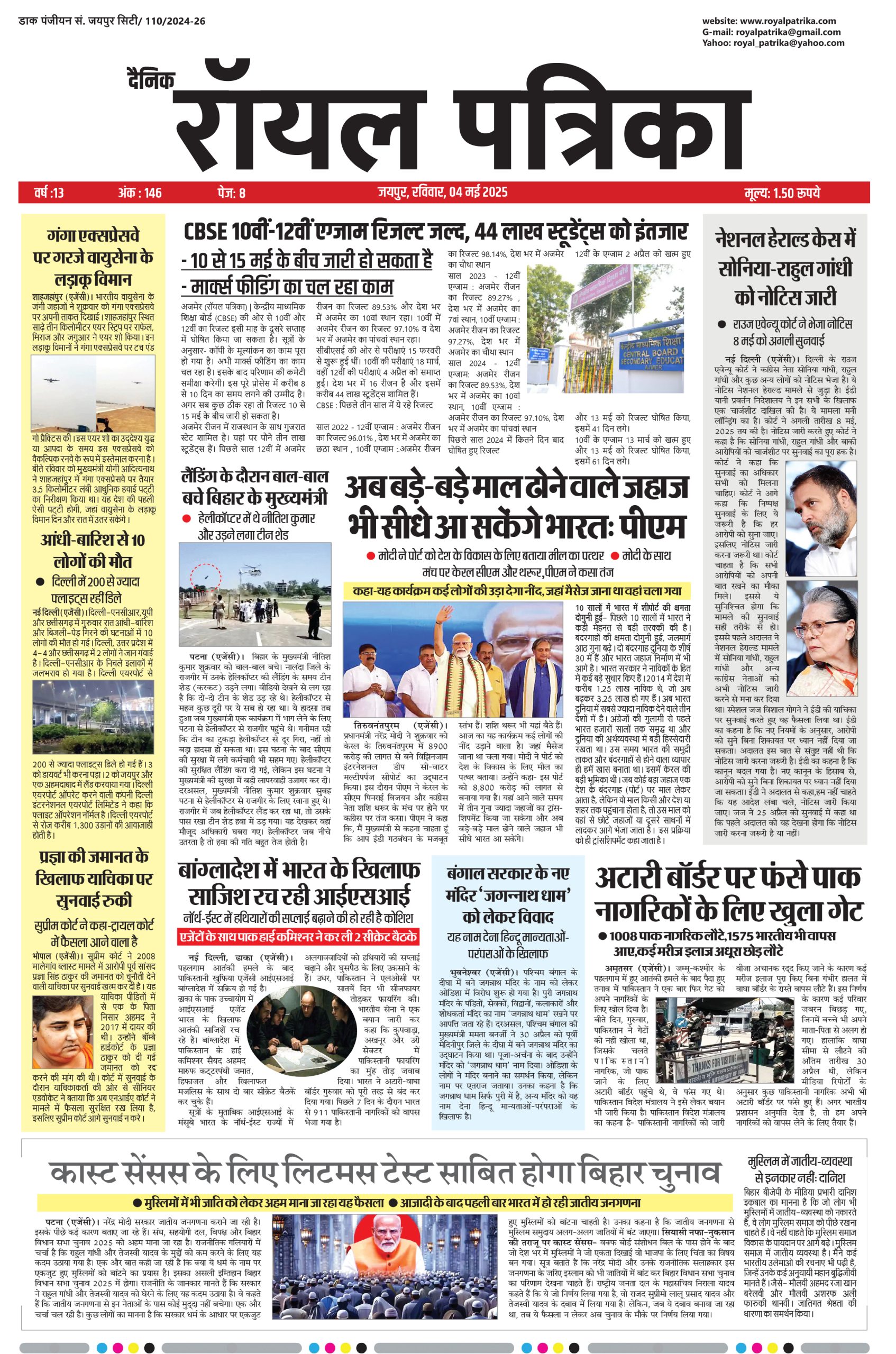 04 मई 2025 दैनिक रॉयल पत्रिका