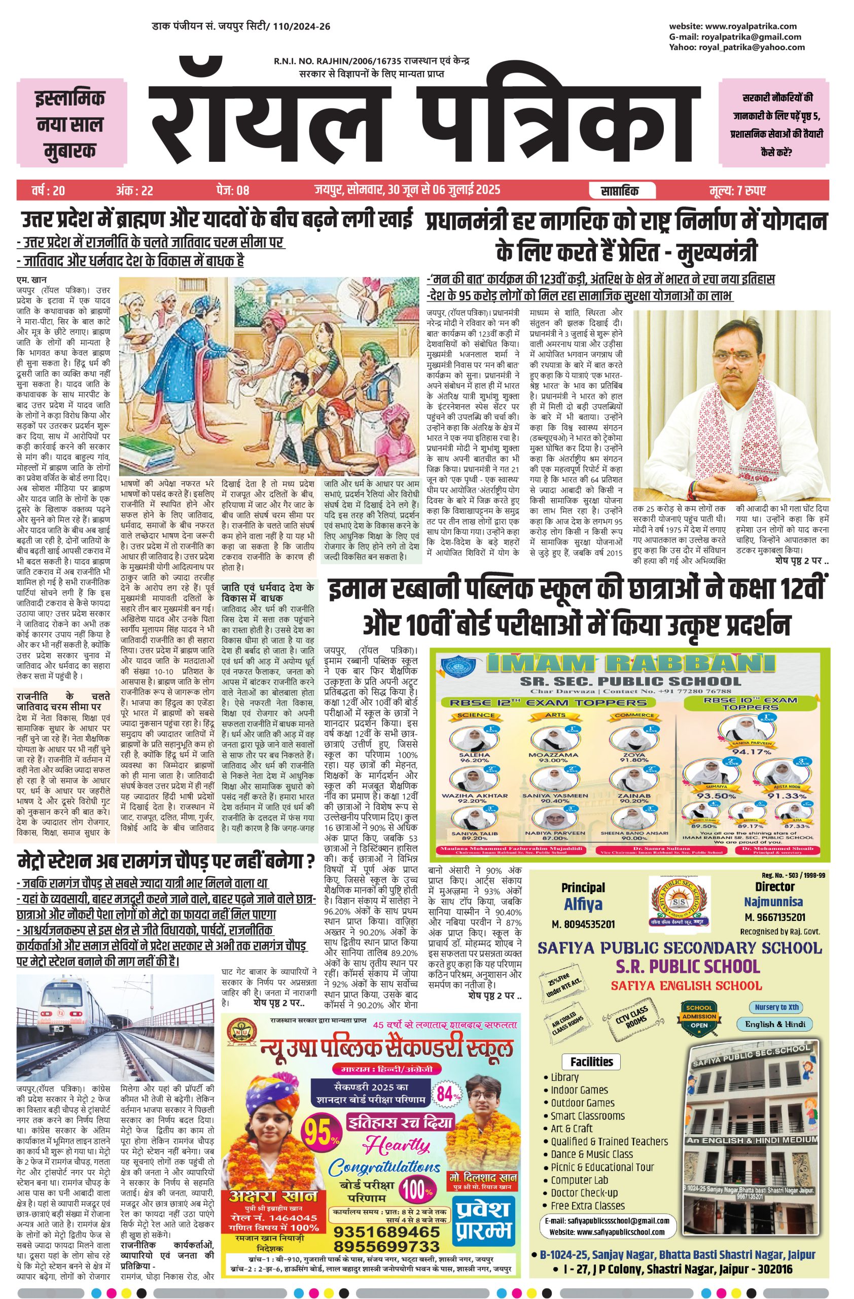 दैनिक रॉयल पत्रिका 20 सितम्बर 2025