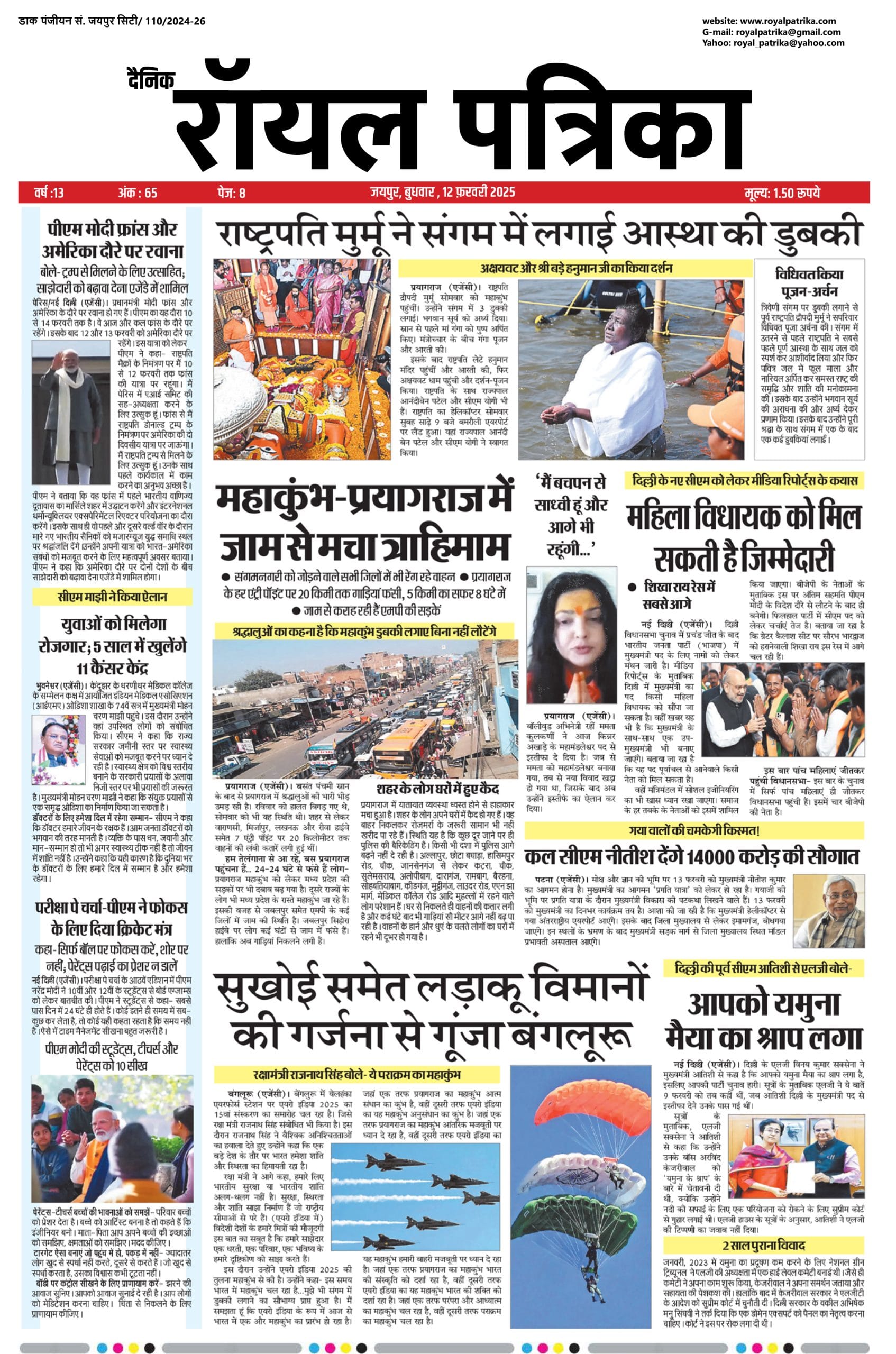 12 फरवरी 2025 दैनिक रॉयल पत्रिका
