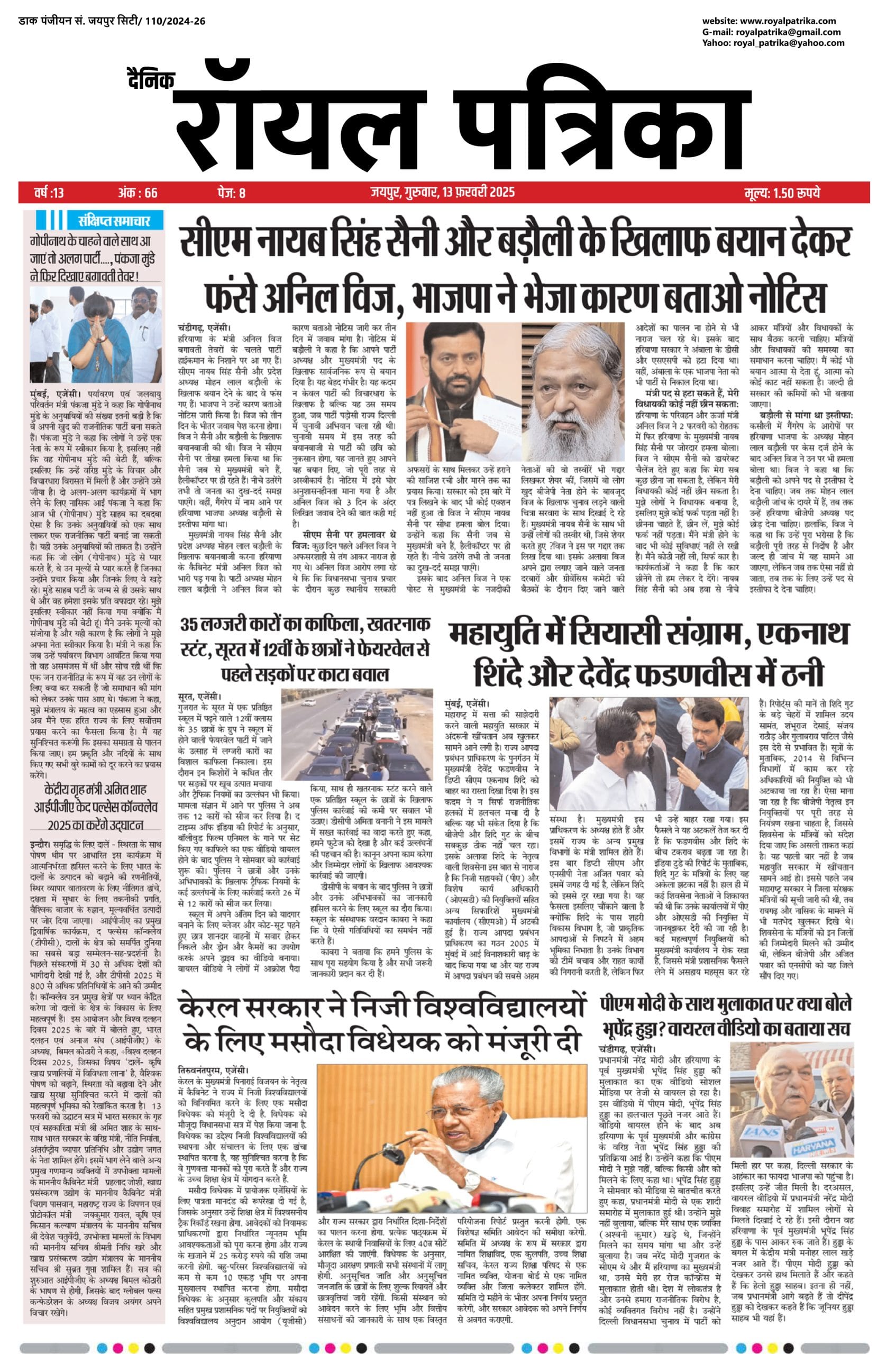 13 फरवरी 2025 दैनिक रॉयल पत्रिका