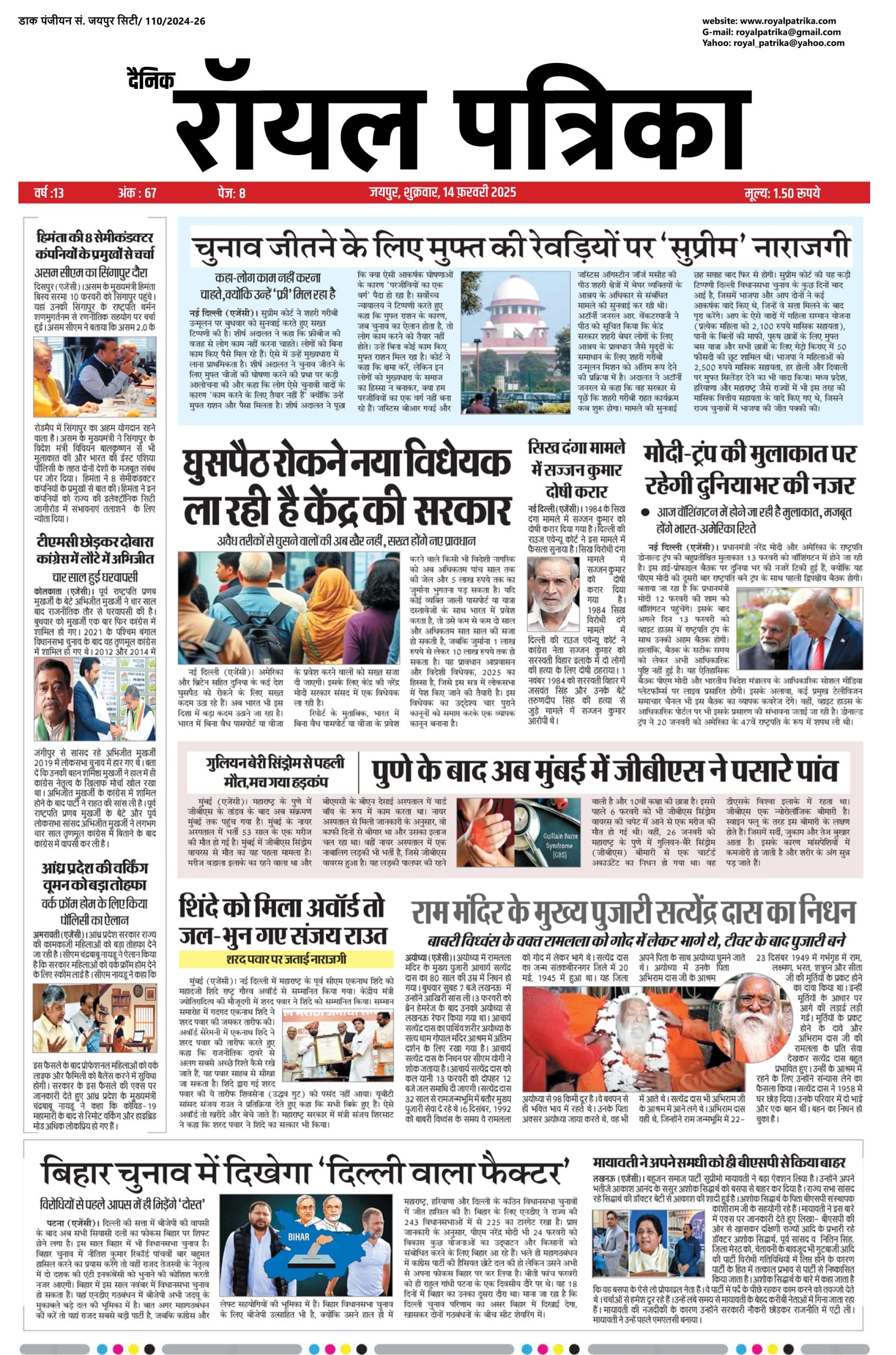 14 फरवरी 2025 दैनिक रॉयल पत्रिका