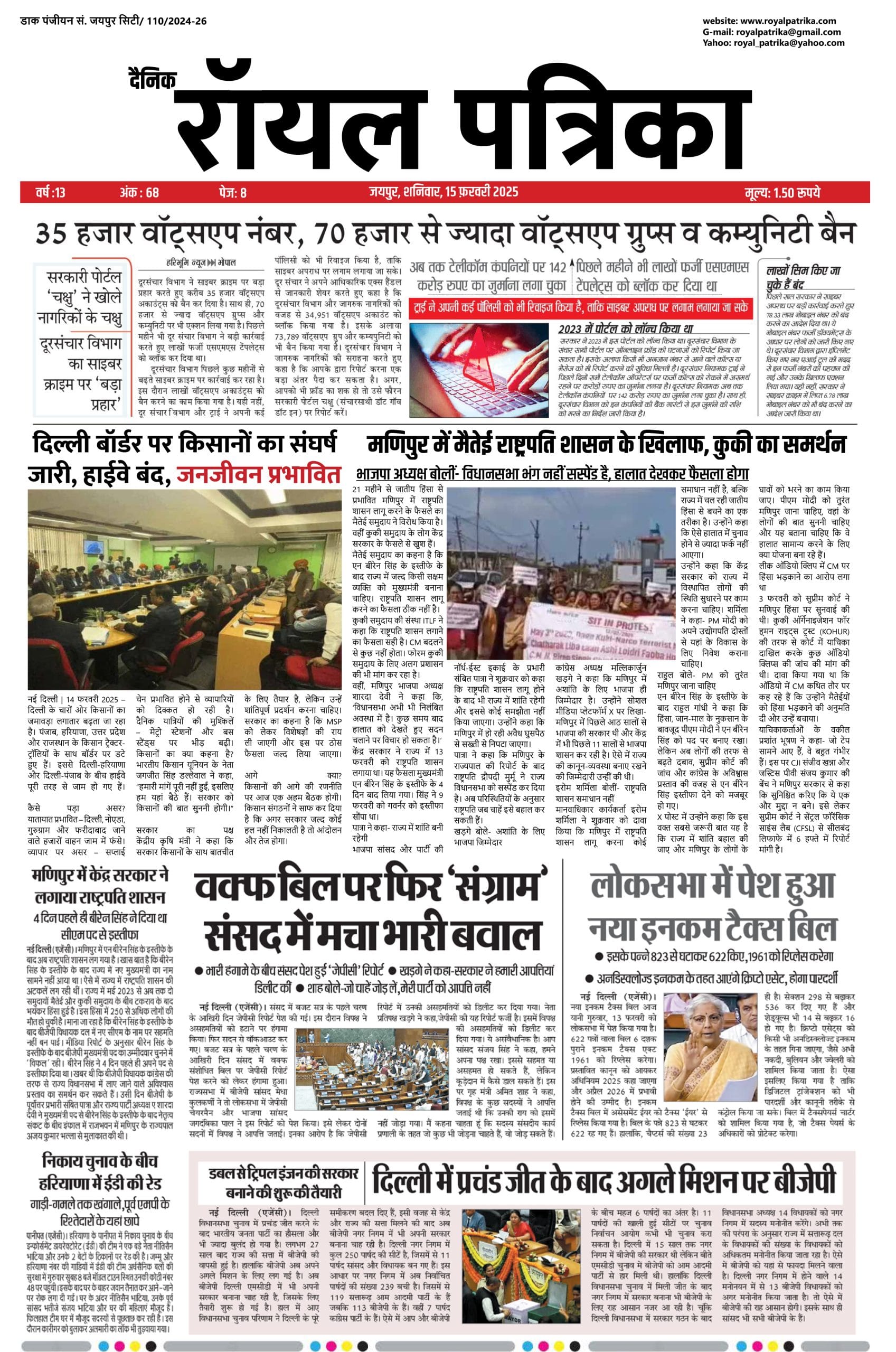 15 फरवरी 2025 दैनिक रॉयल पत्रिका