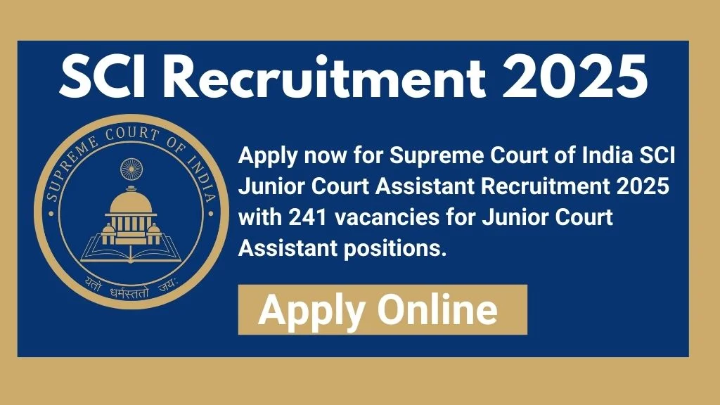 भारत के सर्वोच्च न्यायालय (SCI) ने वर्ष 2025 के लिए 241 जूनियर कोर्ट असिस्टेंट (JCA) पदों की भर्ती की घोषणा... Read more