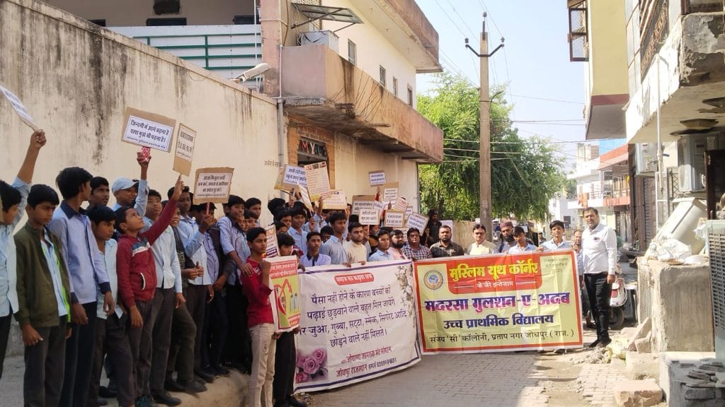 जोधाणा जागरूक मंच ओर मुस्लिम यूथ कॉर्नर के संयुक्त तत्वाधान में नशा मुक्त समाज' मूहिम के तहत रेली का आयोजन नशा मुक्त समाज मूहिम पूरे जोधपुर में आयोजन जारी रखेंगे