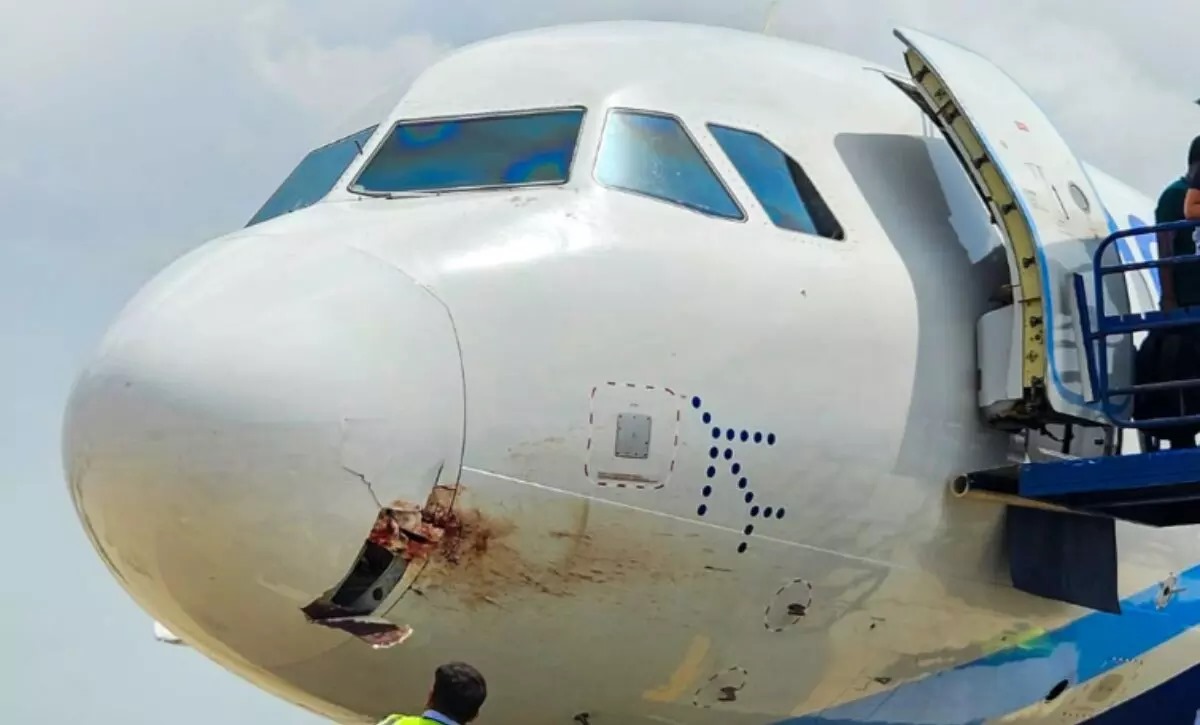 इंडिगो की फ्लाइट से 4000 फीट ऊंचाई पर गिद्ध टकराया, विमान के फ्रंट में डेंट आया
