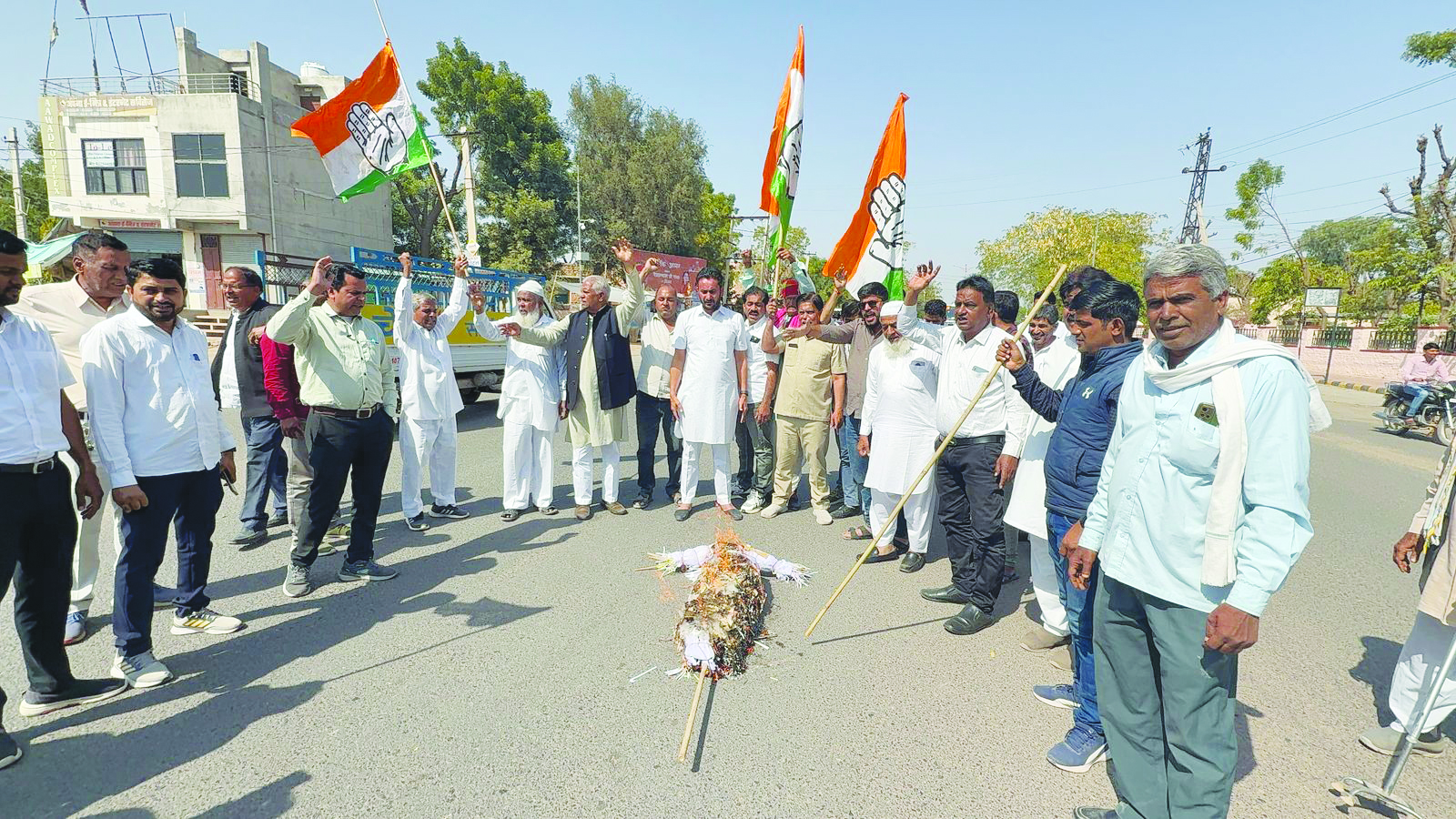 पूर्व प्रधानमंत्री इंदिरा गांधी पर की गई असंसदीय टिप्पणी पर कांग्रेस ने किया विरोध प्रदर्शन