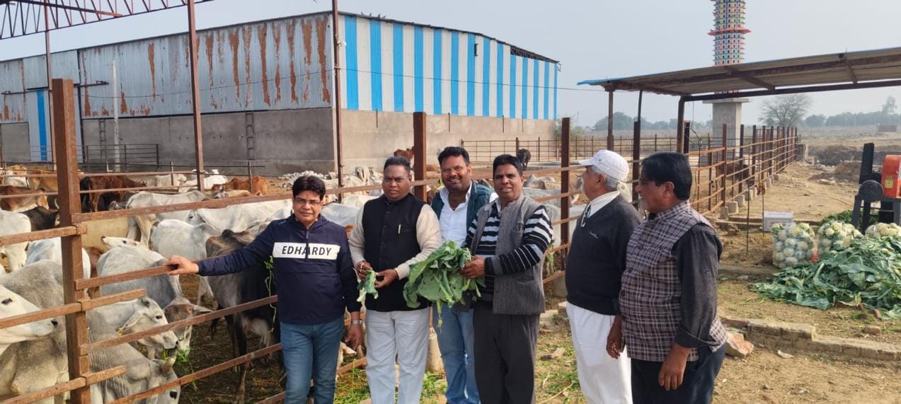 मकर संक्रांति पर गोशाला में चारा खिलाया