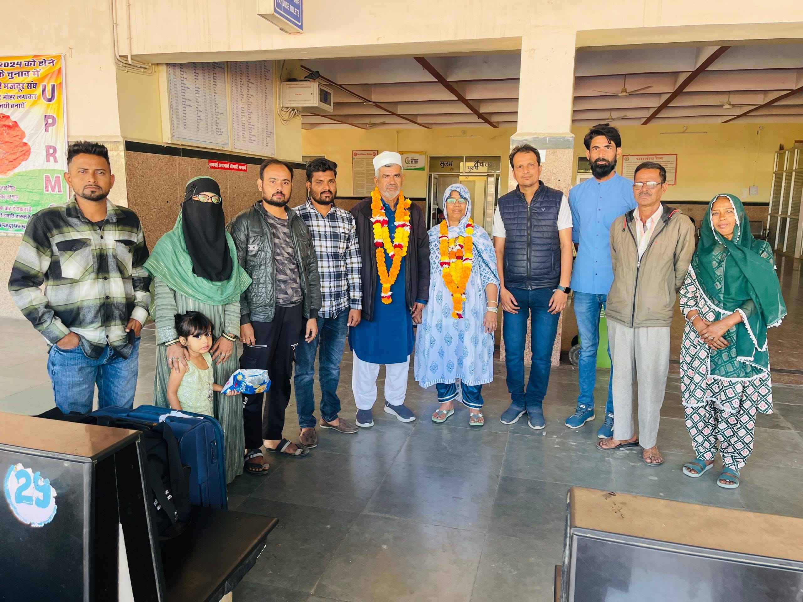 उमराह सफर: मक्का मदीना की यात्रा पर जाने वाले यात्रियों का किया माला पहनाकर इस्तकबाल