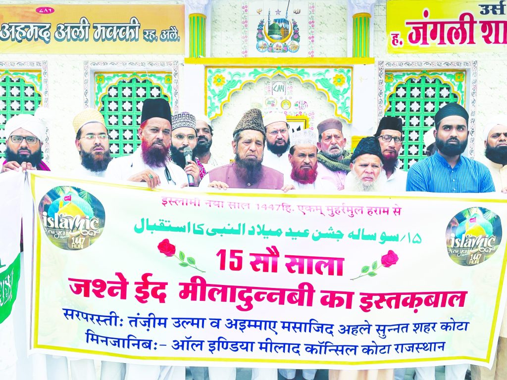 कोटा में पैग़म्बरे इस्लाम की विलादत के 1500 साल पूरे होने पर आगामी 5 सितंबर 2025 को मनाए जाने वाले मिलादुन्नबी की तैयारियों को लेकर ऑल इंडिया सीरत कमेटी की बैठक दरगाह ईदूशाह बाबा हजीरा पर हुई। इसमें मौलाना फज़्ले हक़ को राष्ट्रीय अध्यक्ष बनने पर उलेमाओं और विभिन्न संगठनों ने स्वागत किया। उन्होंने कहा कि यह 1500 साला मिलादुन्नबी देश में मानवता और सांप्रदायिक सौहार्द मज़बूत करने का अवसर… Read More