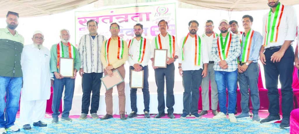 जोधपुर (रॉयल पत्रिका)। नवीन जोधाणा जागरण मंच संस्थान की ओर से हर साल की तरह इस साल भी स्वतंत्रता दिवस के मौके पर राजीव गांधी स्टैचू के पास 11000 तिरंगा चिन्ह वितरण किए गए और अतिथी सम्मान किया। संस्थापक साजिद खान ने बताया कि 15 अगस्त स्वतंत्रता दिवस के मौके पर नशे के विरुद्ध नुक्कड़ नाटक किया गया नाटक में मोहम्मद सलीम मुन्ना, आसिफ नूरी और अध्यक्ष इमरान कुरेशी, ओर उस्मान नुक्कड़ नाटक की प्रस्तुति दी। नुक्कड़ नाटक को लेकर जिला अध्यक्ष सलीम खान ने मंच द्वारा नशे के विरुद्ध चलाएं अभियान के लिए कार्यकर्ताओं का आभार व्यक्त किया। इस दौरान एडवोकेट असलम खान, इकबाल अली रंगरेज, संरक्षक मोहम्मद इरफान कुरैशी, नसीम अली, राजु खान, जोधाणा युवा मंच के अध्यक्ष अकरम सांखला, इमरान खान, मोहम्मद सलीम मुन्ना, शौकत कुरैशी, शकील अहमद, ताजदार अब्बासी, मोहम्मद समीर, राजु खान, शाहरुख खान, मोहम्मद लियाकत, मोहम्मद समीर, मोहम्मद उस्मान, मोहम्मद अशफाक, सोहेल जिन्दरान, इफ्तिखार अहमद मोहम्मद रिजवान, मोहम्मद अली, समीर बेलिम, आरिफ राठौर, आदि उपस्थित रहे।