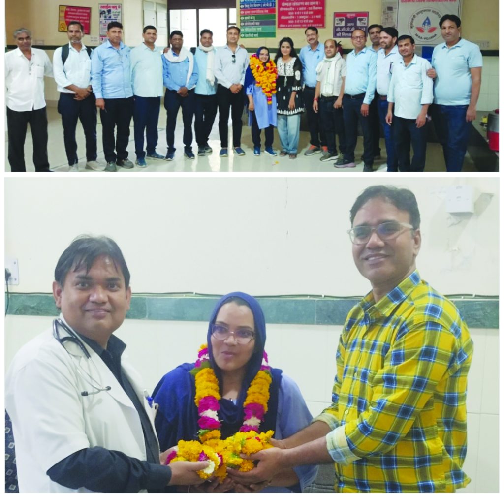 बारां, (रॉयल पत्रिका)।  हज 2025 के मुकद्दस सफर पर जाने वाले हाजियों की सेहत की देखभाल के लिए हज कमेटी ऑफ इंडिया भारत सरकार द्वारा भेजी जानी वाली मेडिकल टीम जिनमें 12 पैरा मेडिकल और 5 डॉ.  शामिल हैं। उसमें बारां जिले से पहली बार मेडिकल टीम ऑफ इंडिया में भारत सरकार की ओर से चयन हुआ है। बारां मेडिकल कॉलेज से नर्सिंग ऑफिसर शमा बी का हज डेप्यूटेशन के तहत हज मेडिकल टीम में चयन हुआ है,ये मेडिकल टीम भारतीय हाजियों के स्वास्थ्य पर विशेष ध्यान रखेगी। इसी के तहत शनिवार को मातृ एवं शिशु चिकित्सालय एमसीएच विंग में नर्सिंग ऑफिसर शमा बी का माला पहनाकर मुंह मीठा करवाकर पूरे स्टॉफ की ओर से स्वागत कर मुबारकबाद पेश की गई। इस दौरान प्रमुख चिकित्सा अधिकारी पीएमओ डॉ. नरेंद्र मेघवाल, डॉ. वीनू कटियाल, एमसीएच विंग प्रभारी डॉ. रवि प्रकाश मीणा, डॉ. गिरधर गोपाल नागर सहित मेडिकल और नर्सिंग स्टॉफ मौजूद रहा।