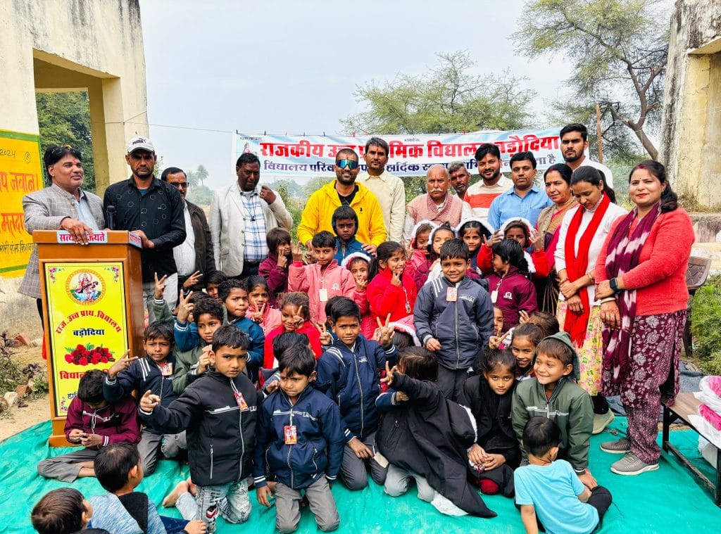 गर्म वस्त्र पाकर बड़ोदिया स्कूल के बच्चों के चेहरे पर आई रौनक