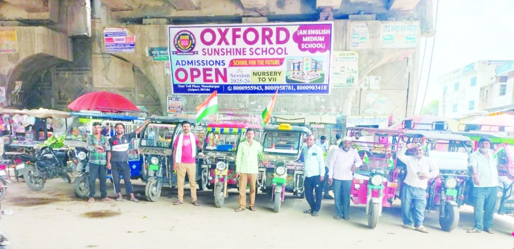 ई-रिक्शा यूनियन द्वारा तिरंगा रैली निकाली गई